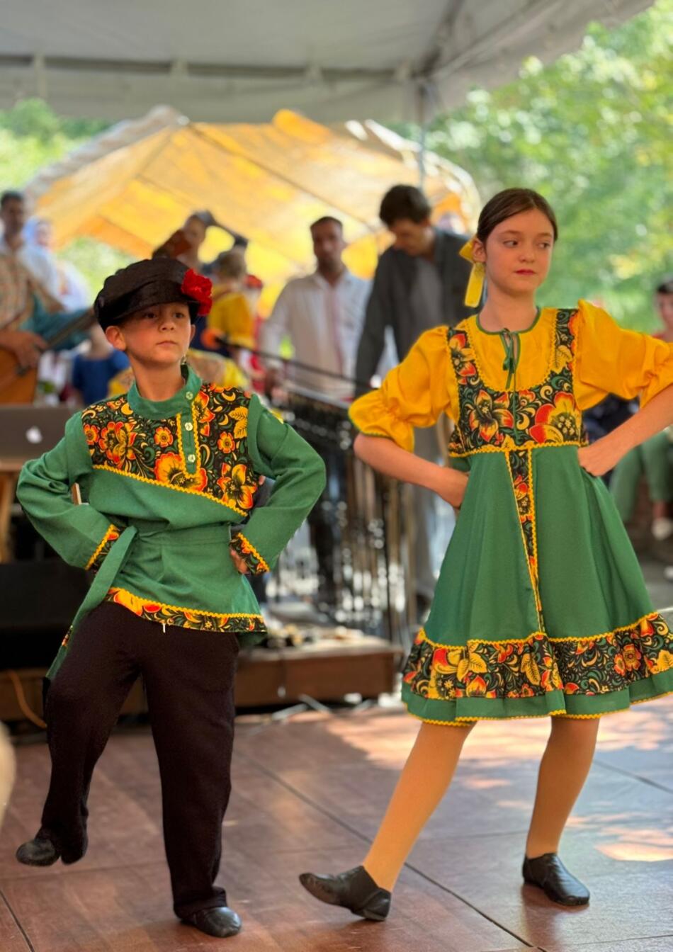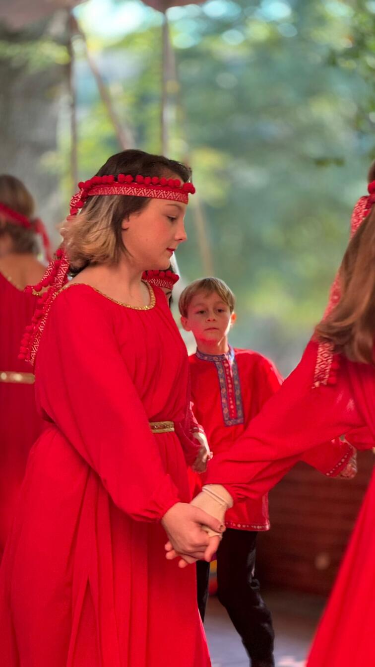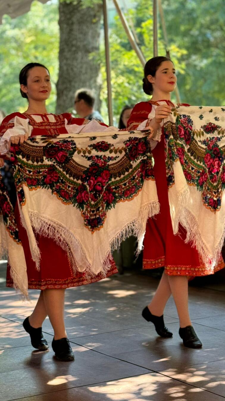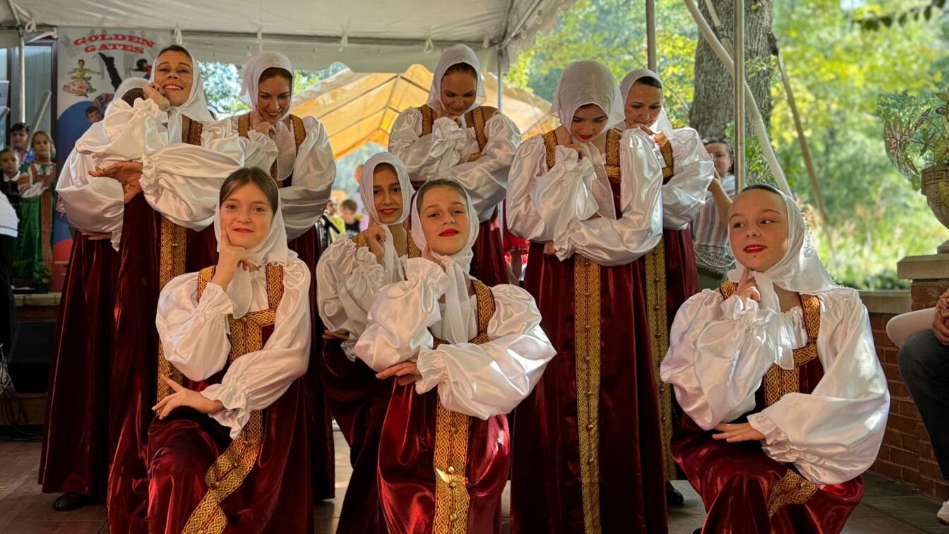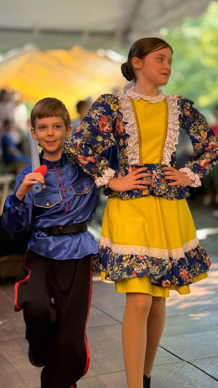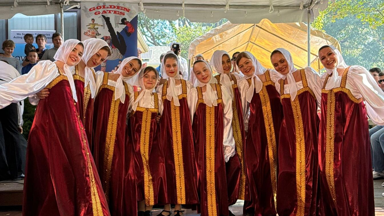 Traditionally, our first performance after a wonderful and eventful summer takes place on the stage of our home – at the Russian Bazaar in the parish of St. John the Baptist. The celebration was a great success: many guests came, and there was a lot of music and fun. The audience greeted and saw off the young dancers with thunderous applause each time. This year, we delighted the guests not only with all the beloved numbers but also with premieres: “Sudarushka” – a dance with shawls performed by the girls from the senior group, and “At Neighbors” – a humorous dance by our youngest participants. We love performing at the Russian Bazaar and wholeheartedly representing our Russian culture!