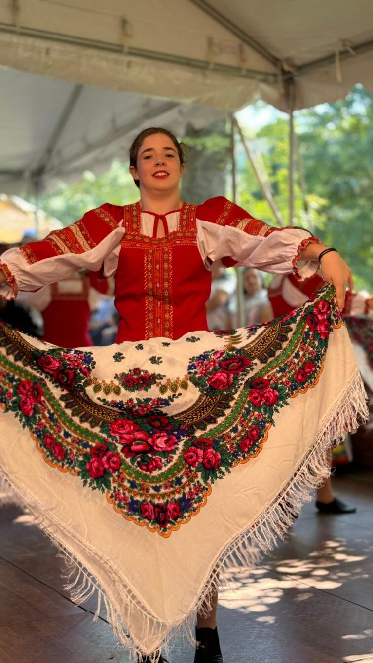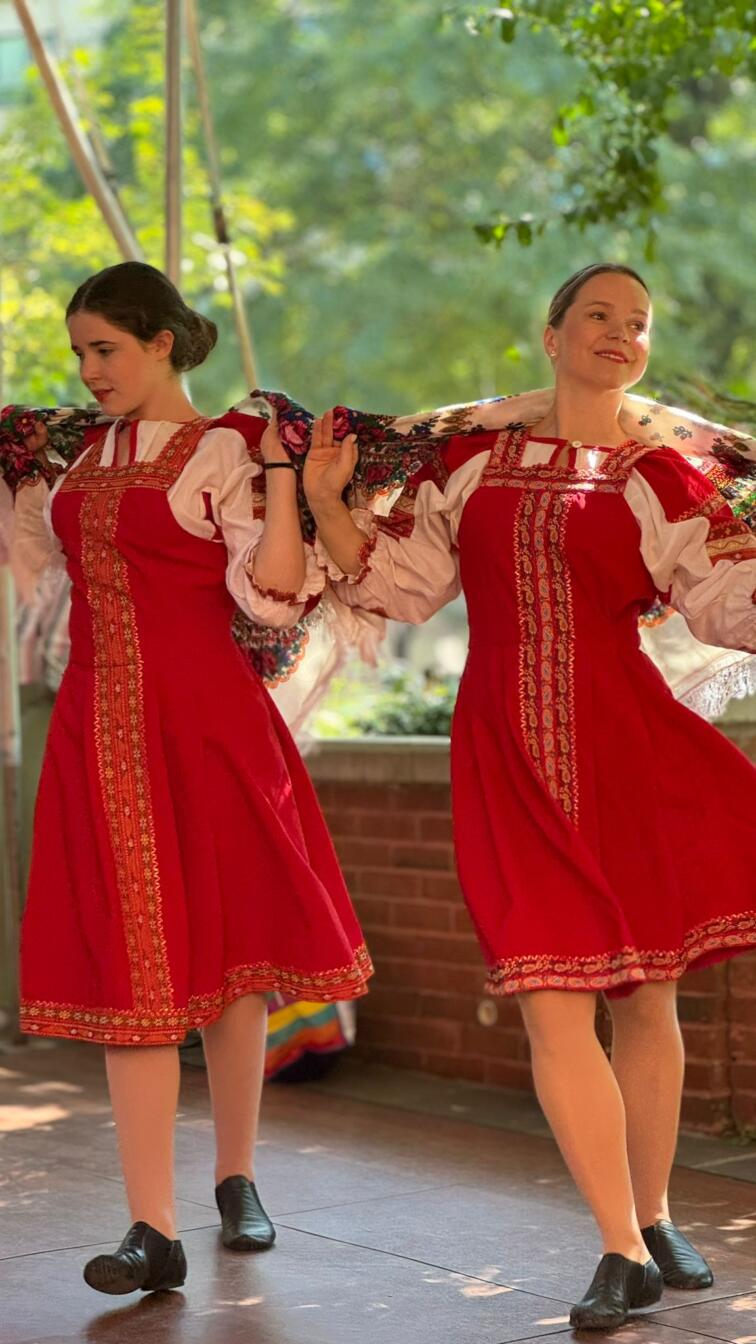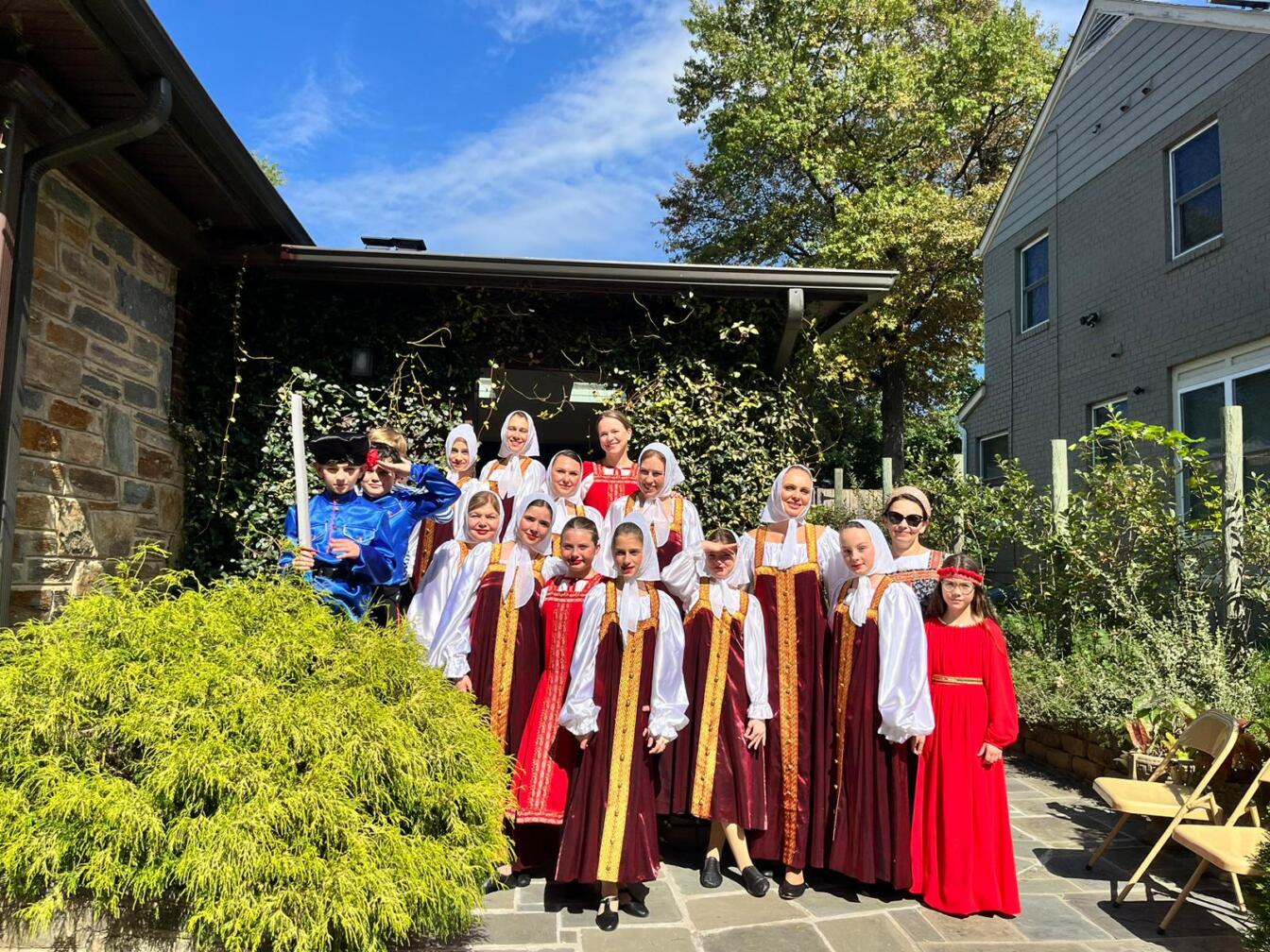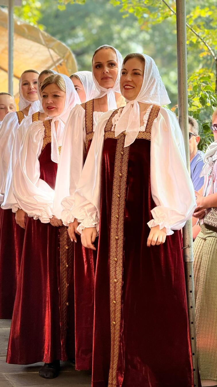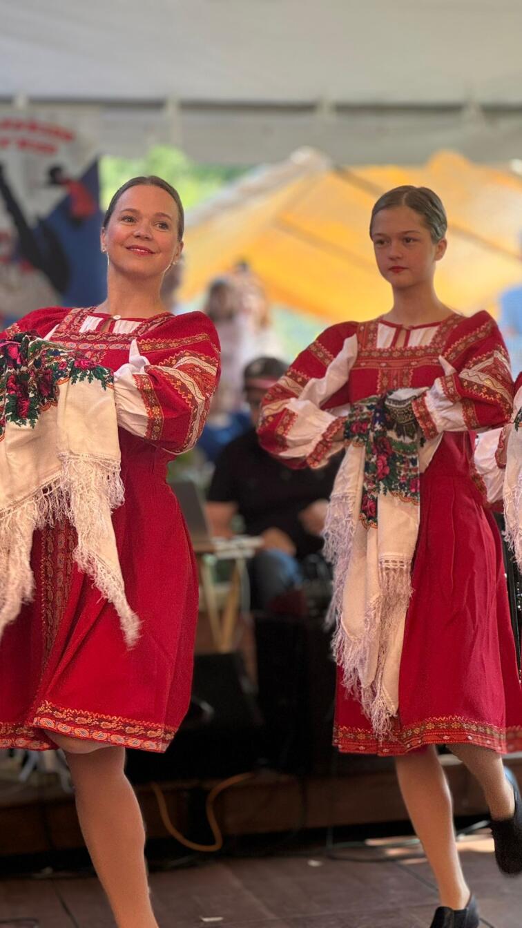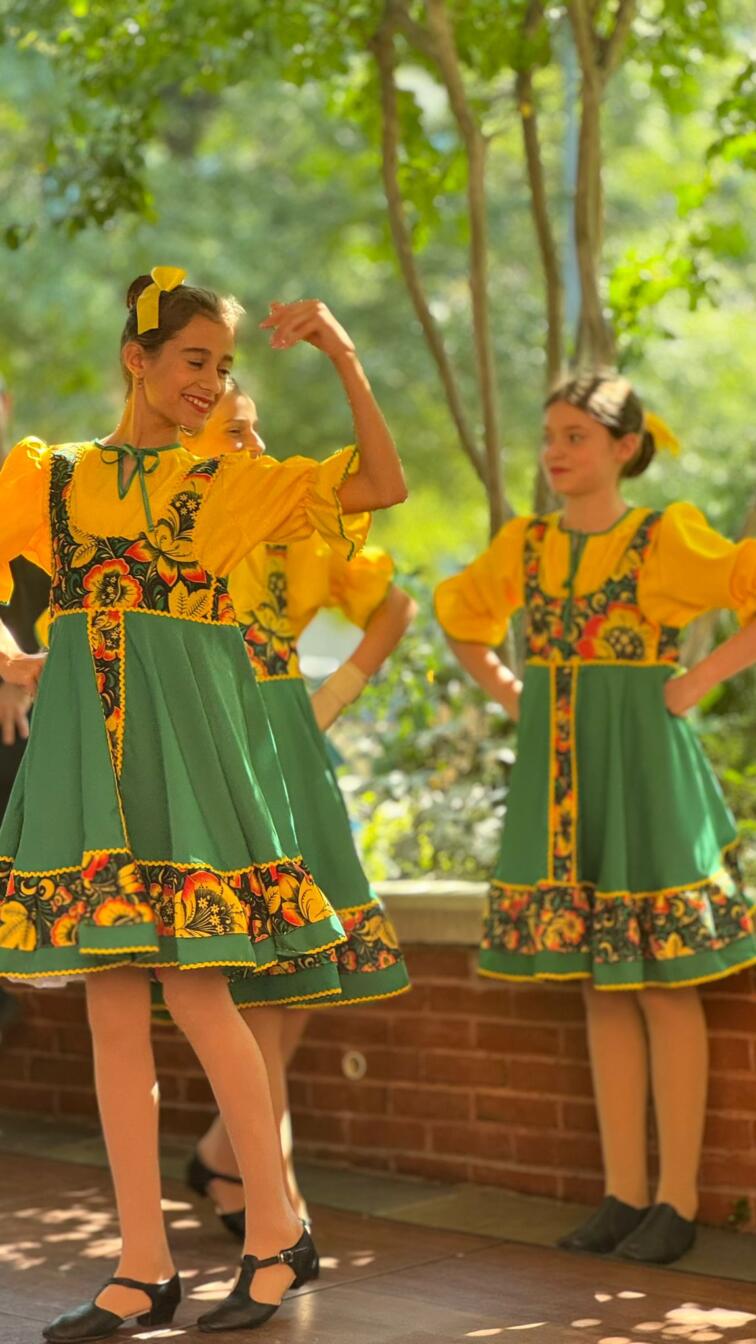Traditionally, our first performance after a wonderful and eventful summer takes place on the stage of our home – at the Russian Bazaar in the parish of St. John the Baptist. The celebration was a great success: many guests came, and there was a lot of music and fun. The audience greeted and saw off the young dancers with thunderous applause each time. This year, we delighted the guests not only with all the beloved numbers but also with premieres: “Sudarushka” – a dance with shawls performed by the girls from the senior group, and “At Neighbors” – a humorous dance by our youngest participants. We love performing at the Russian Bazaar and wholeheartedly representing our Russian culture!