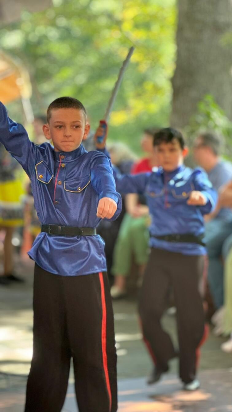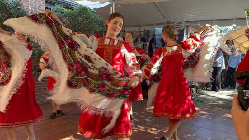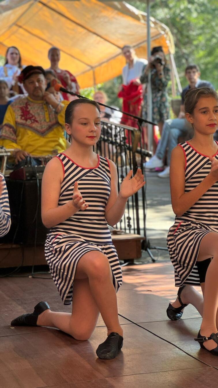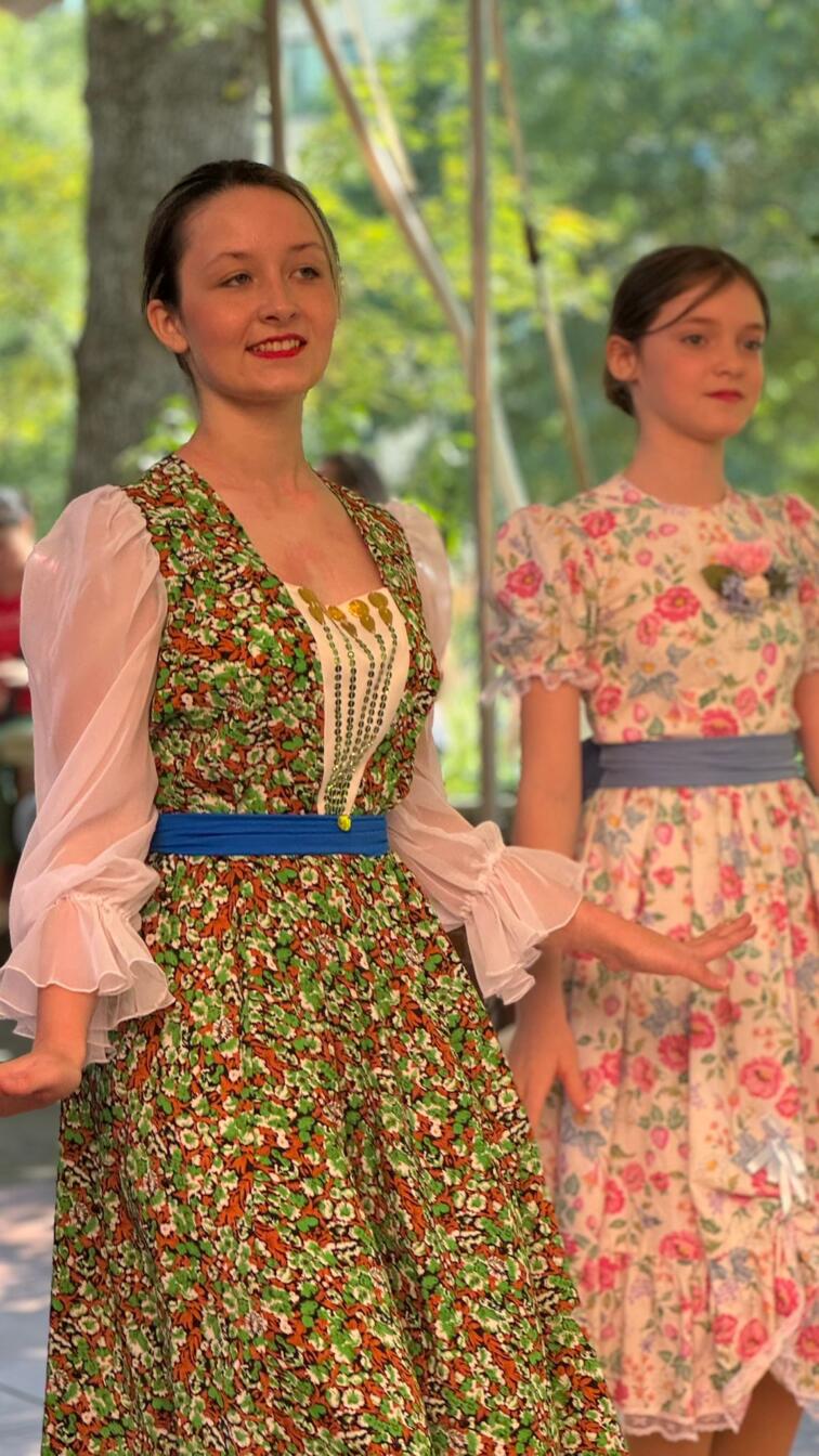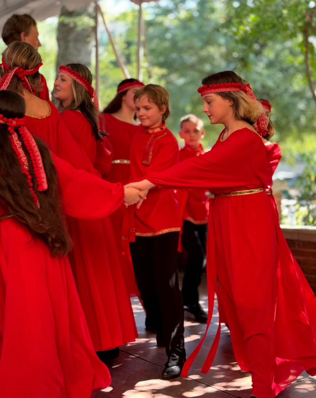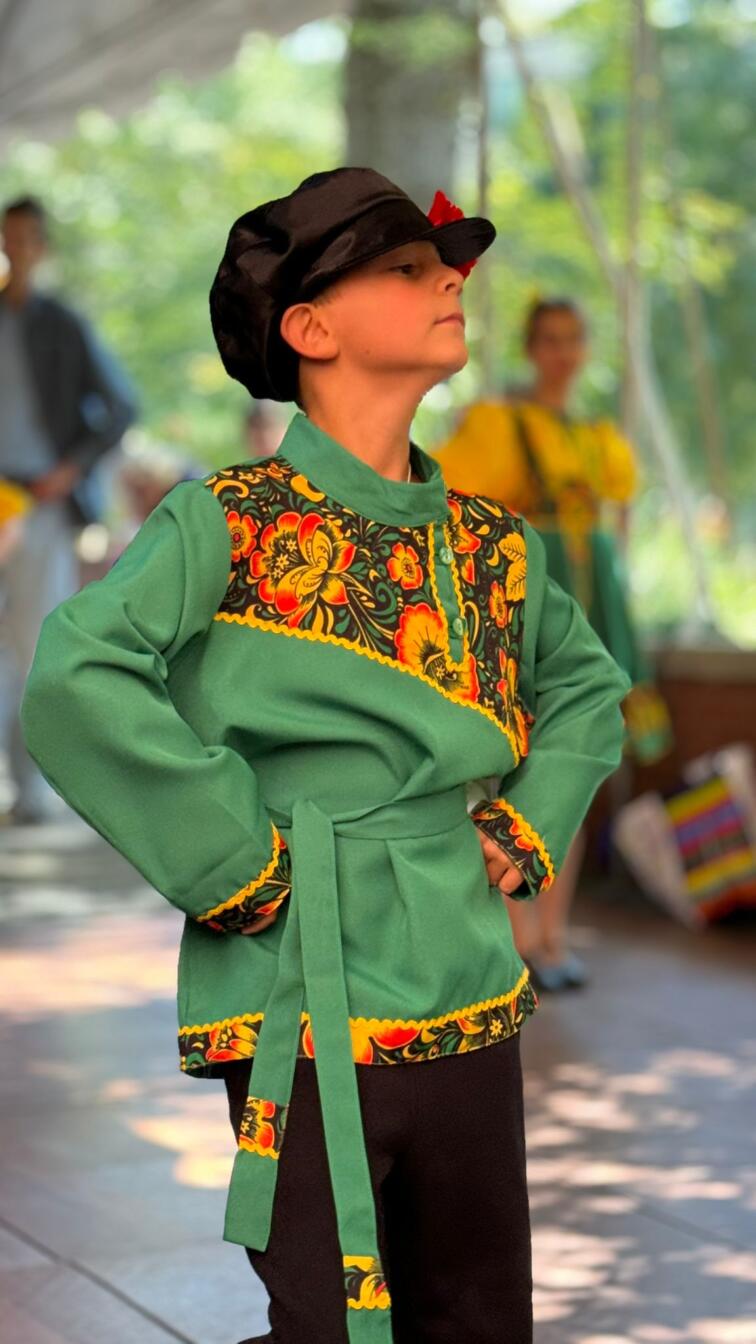 Traditionally, our first performance after a wonderful and eventful summer takes place on the stage of our home – at the Russian Bazaar in the parish of St. John the Baptist. The celebration was a great success: many guests came, and there was a lot of music and fun. The audience greeted and saw off the young dancers with thunderous applause each time. This year, we delighted the guests not only with all the beloved numbers but also with premieres: “Sudarushka” – a dance with shawls performed by the girls from the senior group, and “At Neighbors” – a humorous dance by our youngest participants. We love performing at the Russian Bazaar and wholeheartedly representing our Russian culture!