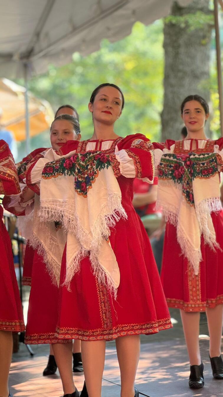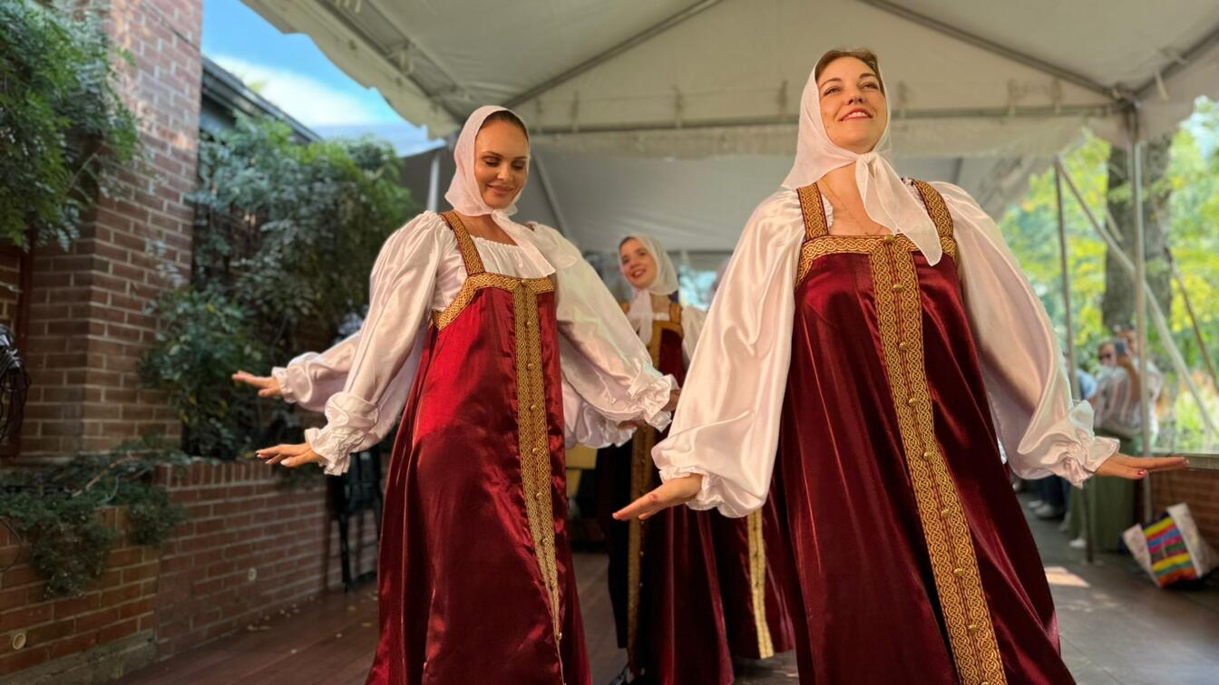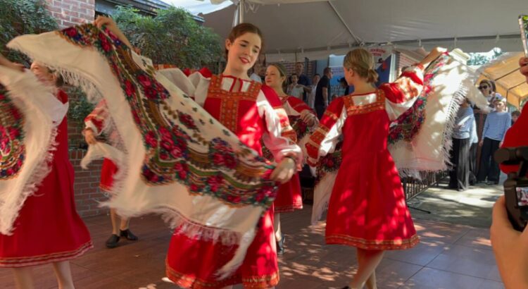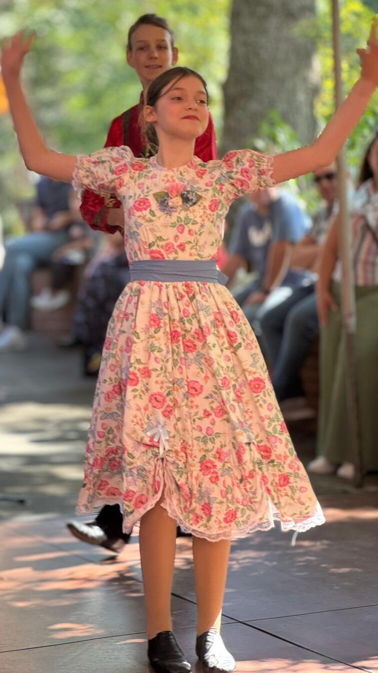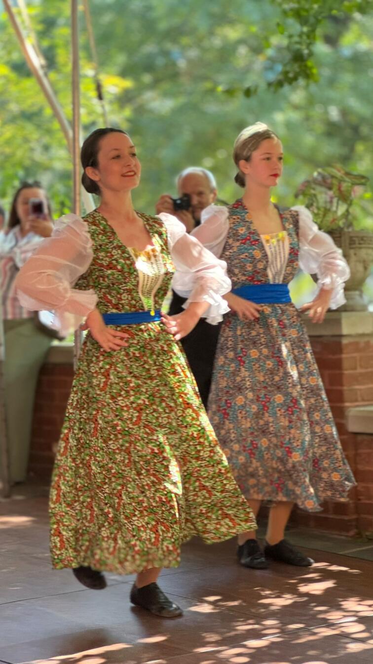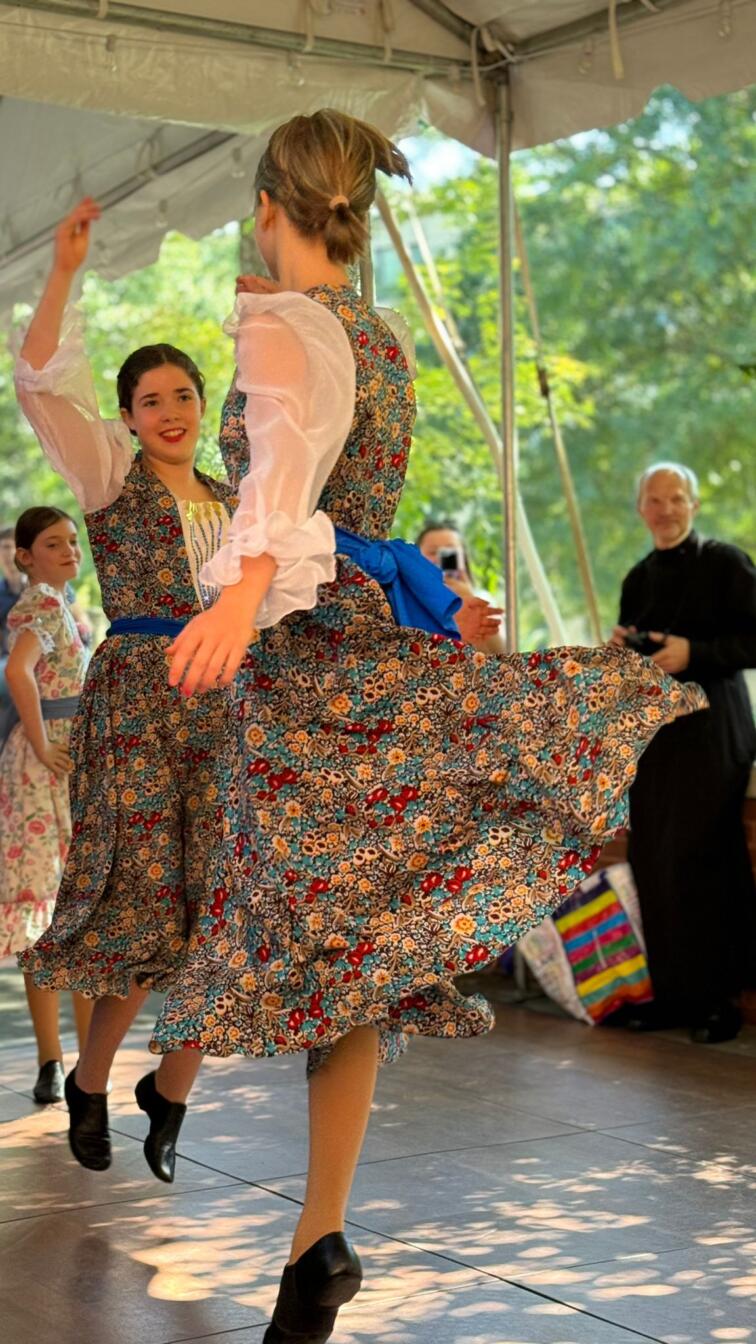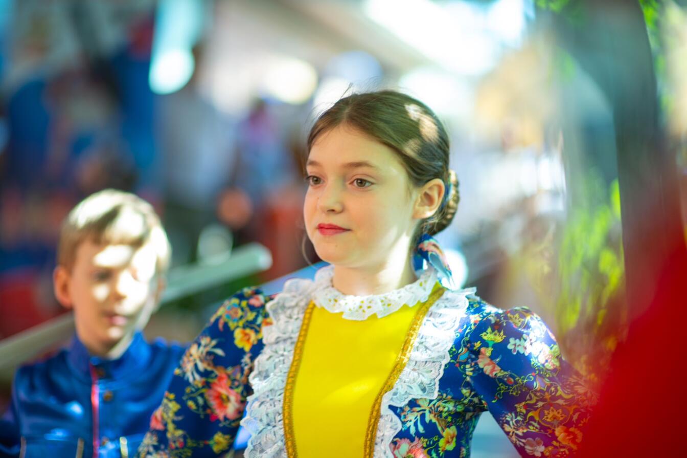 Traditionally, our first performance after a wonderful and eventful summer takes place on the stage of our home – at the Russian Bazaar in the parish of St. John the Baptist. The celebration was a great success: many guests came, and there was a lot of music and fun. The audience greeted and saw off the young dancers with thunderous applause each time. This year, we delighted the guests not only with all the beloved numbers but also with premieres: “Sudarushka” – a dance with shawls performed by the girls from the senior group, and “At Neighbors” – a humorous dance by our youngest participants. We love performing at the Russian Bazaar and wholeheartedly representing our Russian culture!