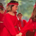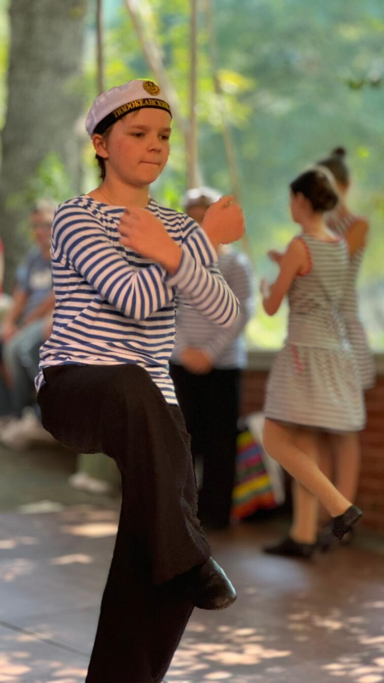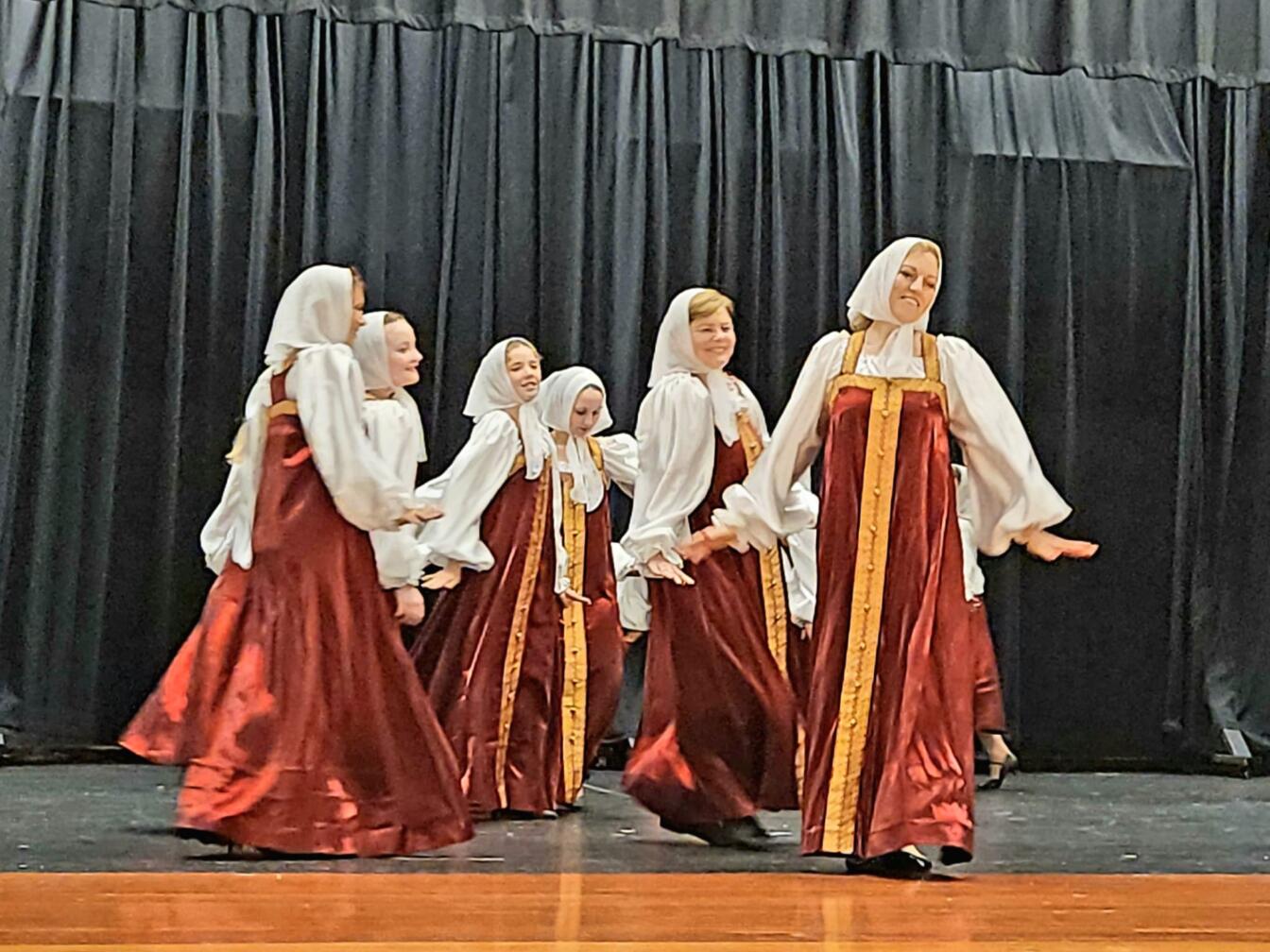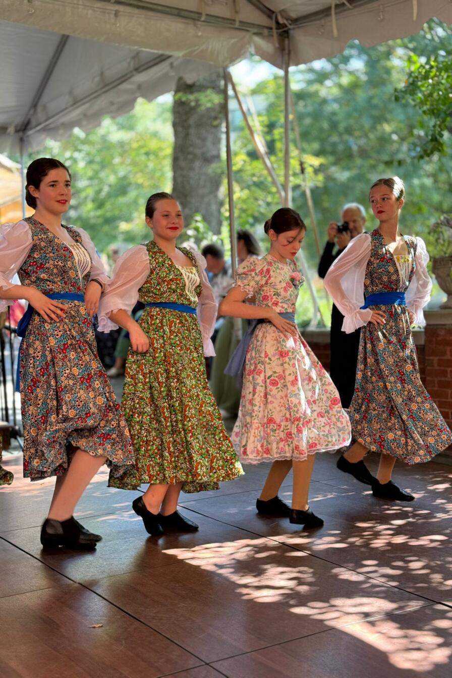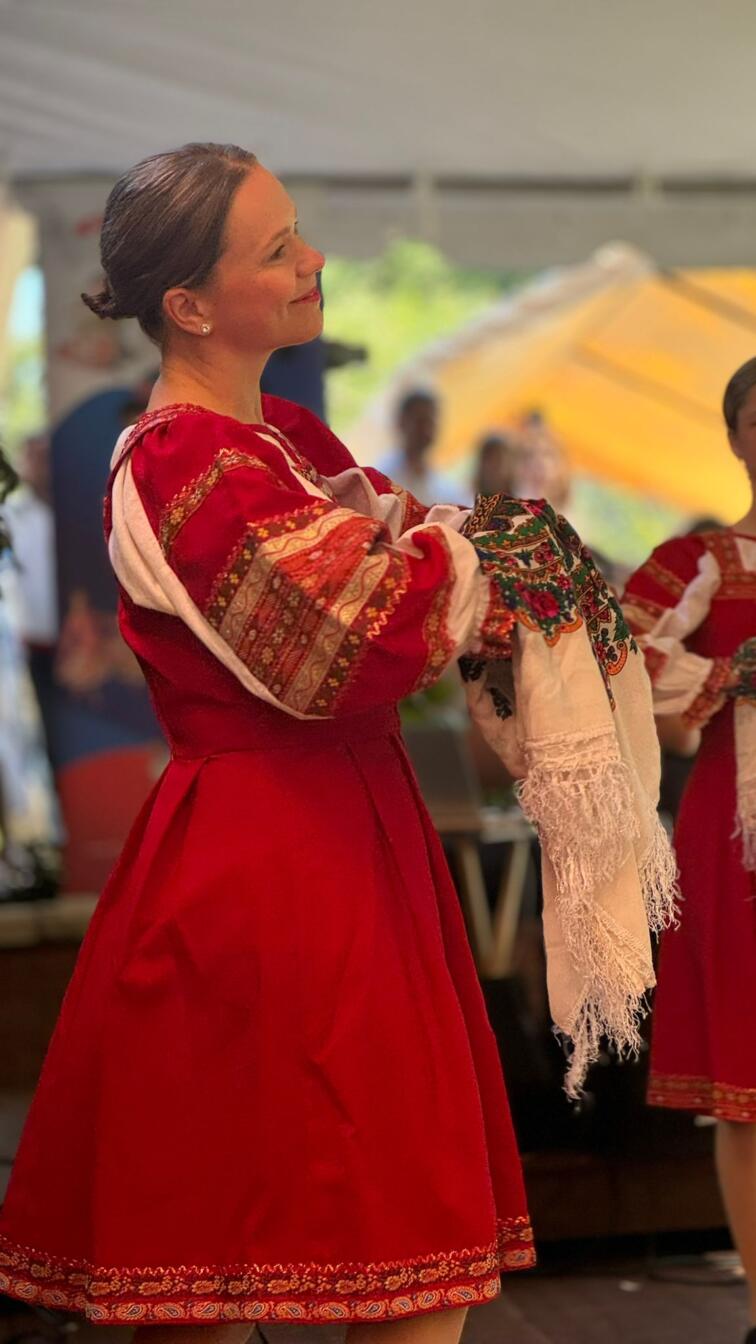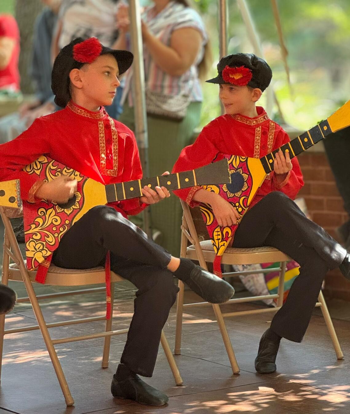Traditionally, our first performance after a wonderful and eventful summer takes place on the stage of our home – at the Russian Bazaar in the parish of St. John the Baptist. The celebration was a great success: many guests came, and there was a lot of music and fun. The audience greeted and saw off the young dancers with thunderous applause each time. This year, we delighted the guests not only with all the beloved numbers but also with premieres: “Sudarushka” – a dance with shawls performed by the girls from the senior group, and “At Neighbors” – a humorous dance by our youngest participants. We love performing at the Russian Bazaar and wholeheartedly representing our Russian culture!